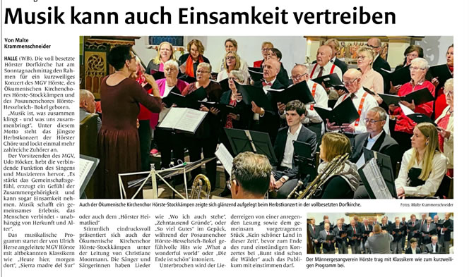 Haller Kreisblatt zum Frühlingsfest des MGV-Hörste