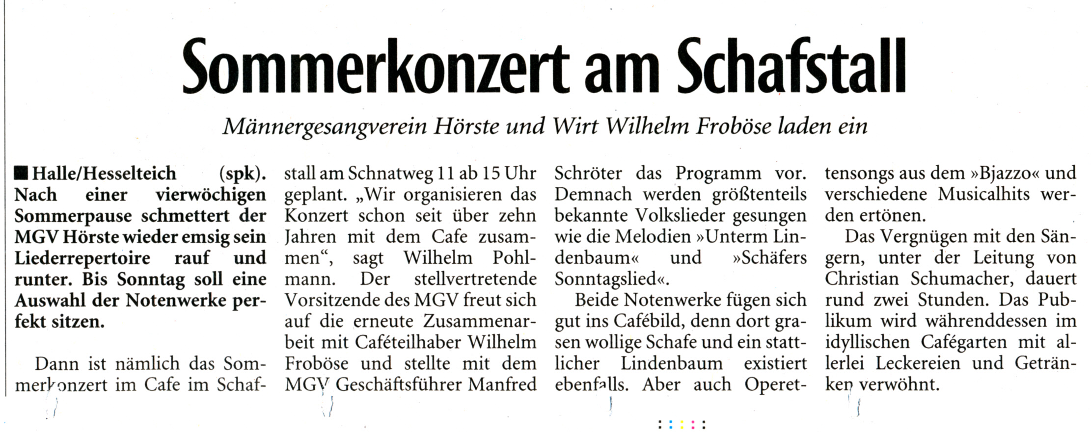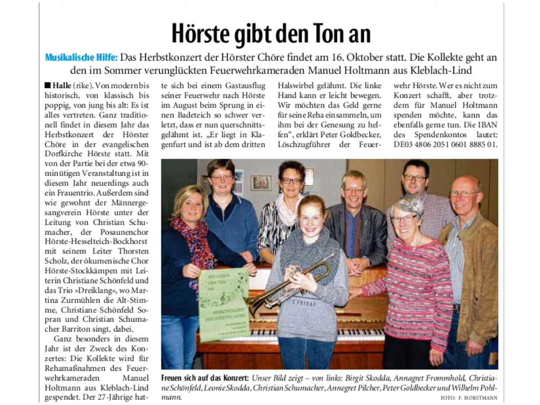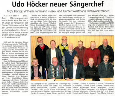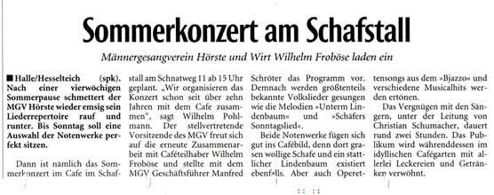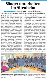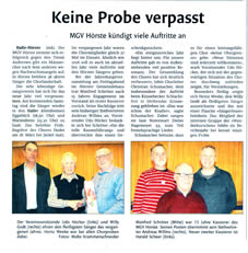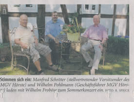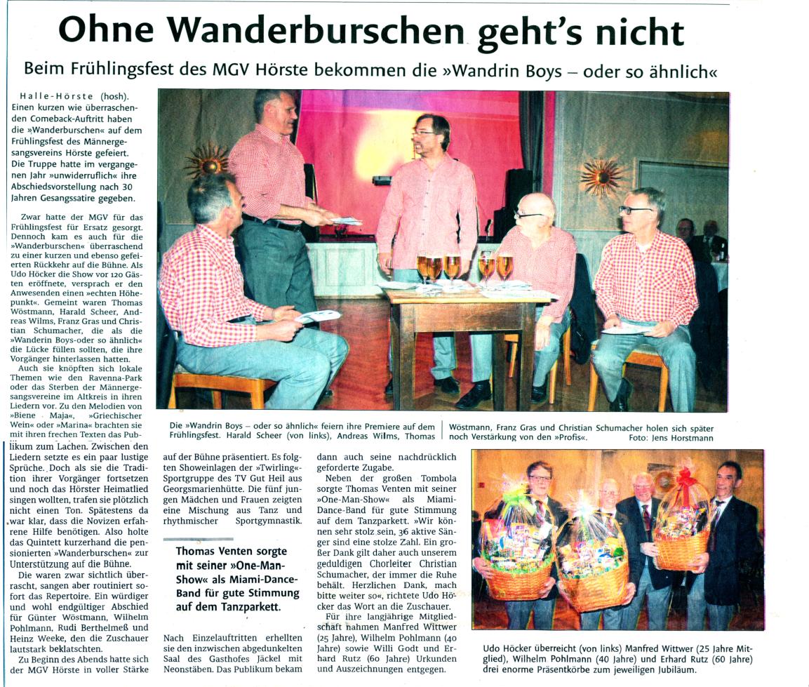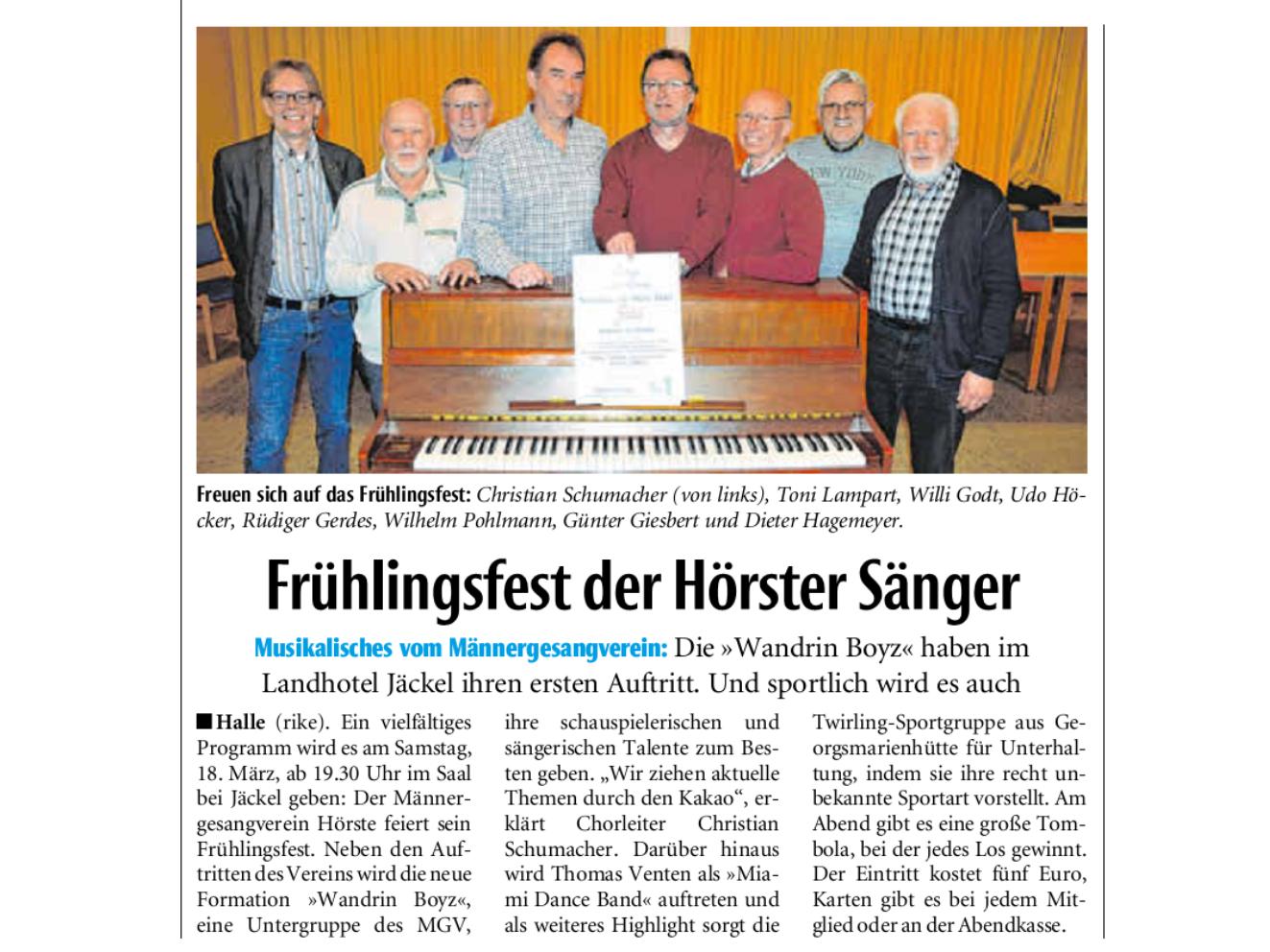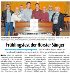 Westfalenblatt zum Frühlingsfest des MGV-Hörste