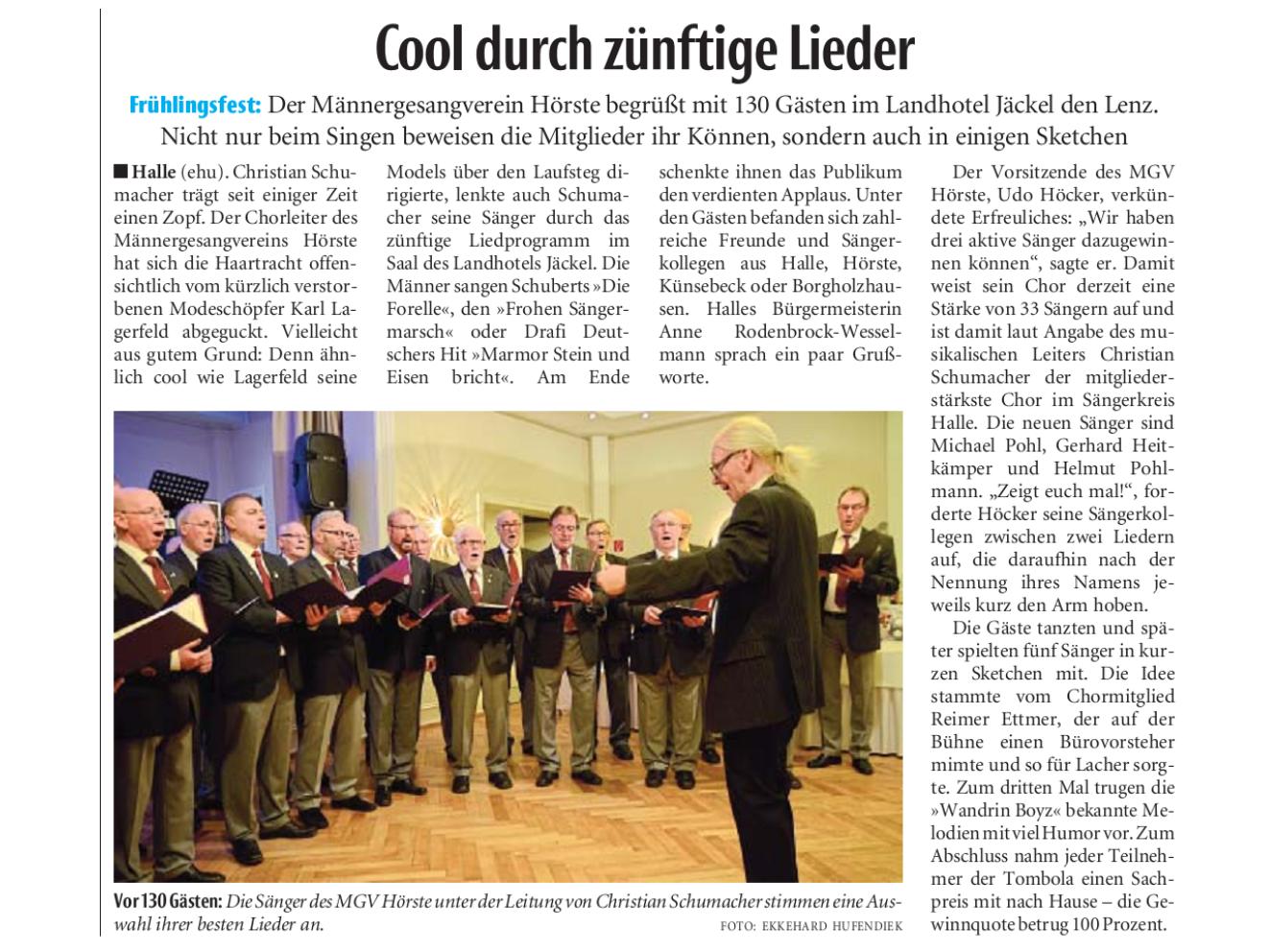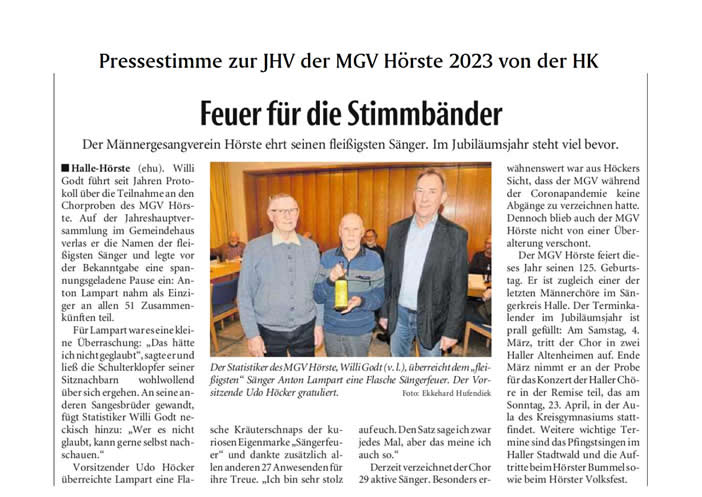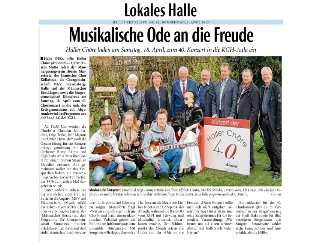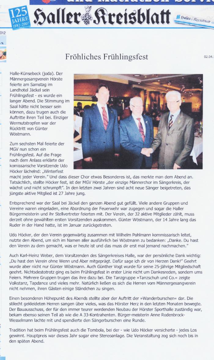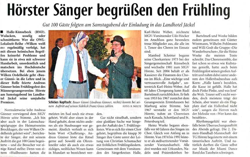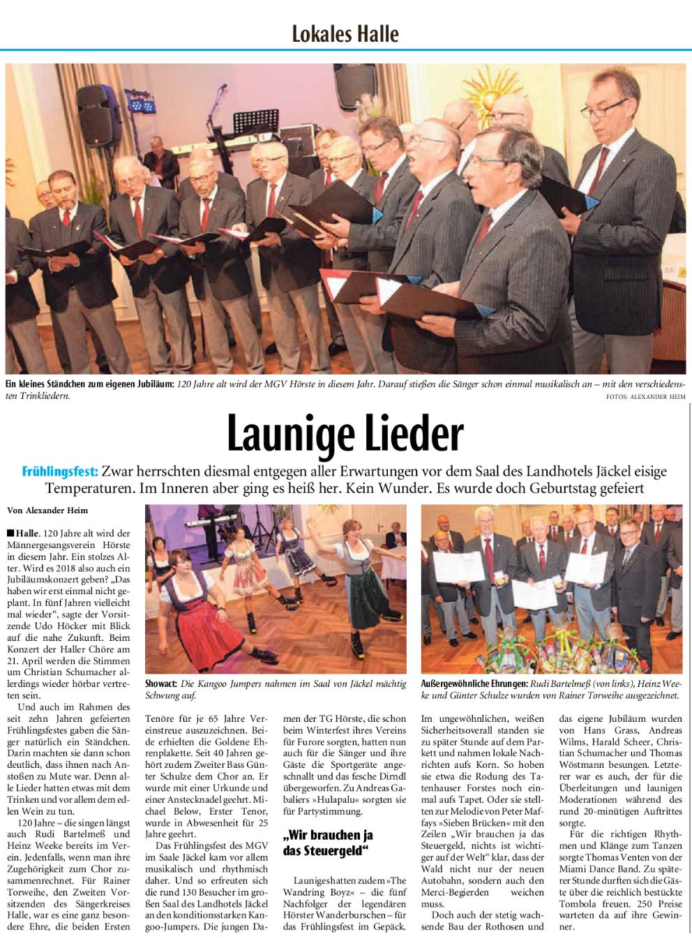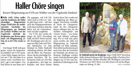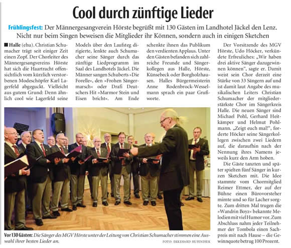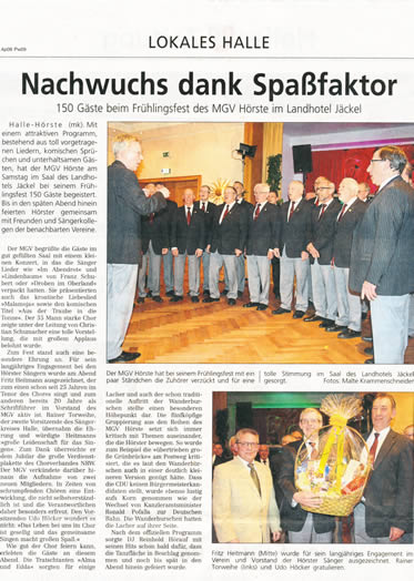 Haller Kreisblatt zum Frühlingsfest des MGV-Hörste
