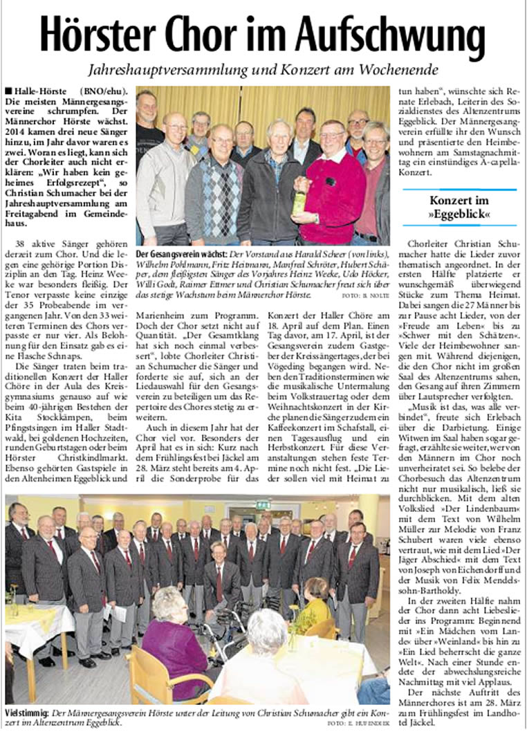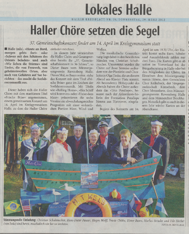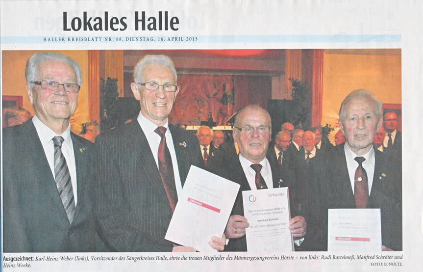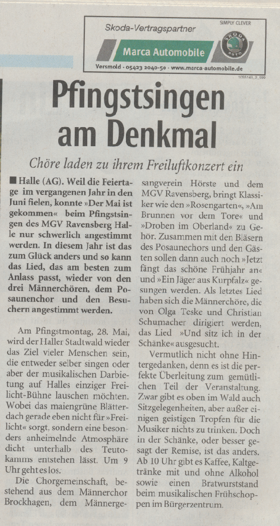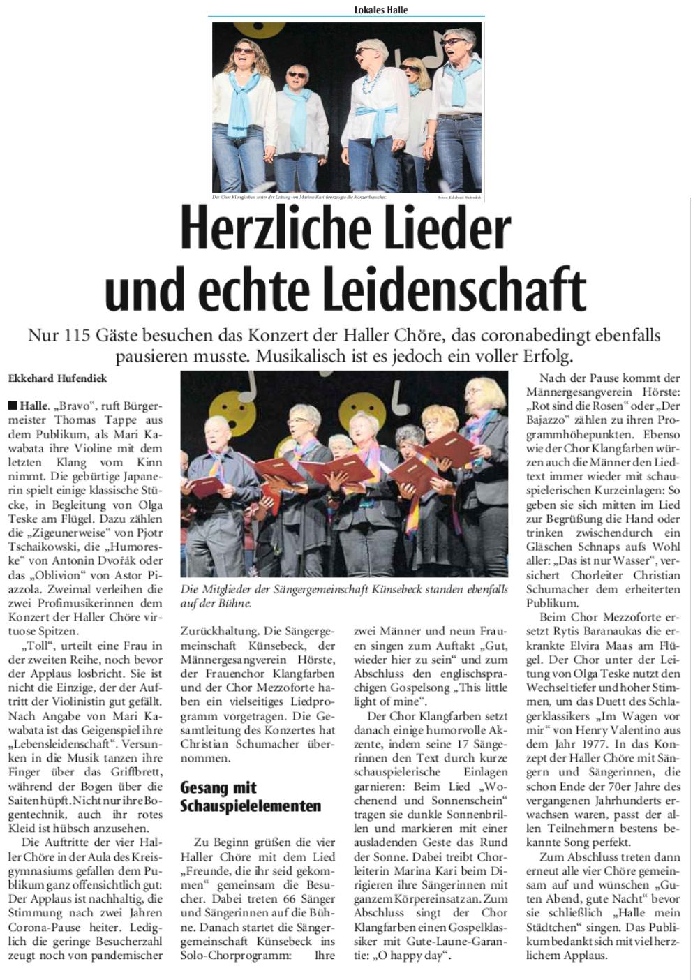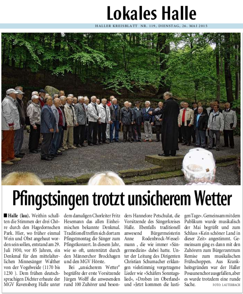 Haller Kreisblatt zum Frühlingsfest des MGV-Hörste