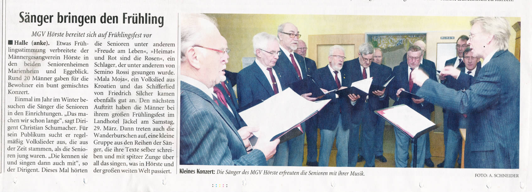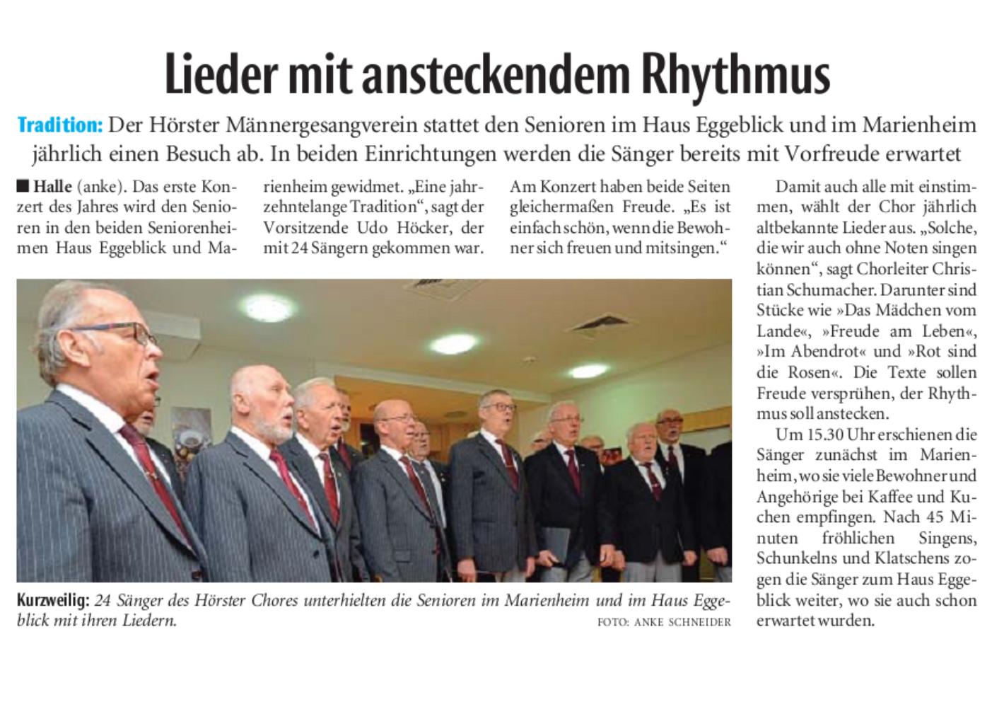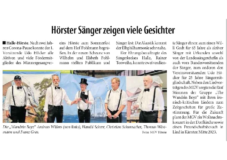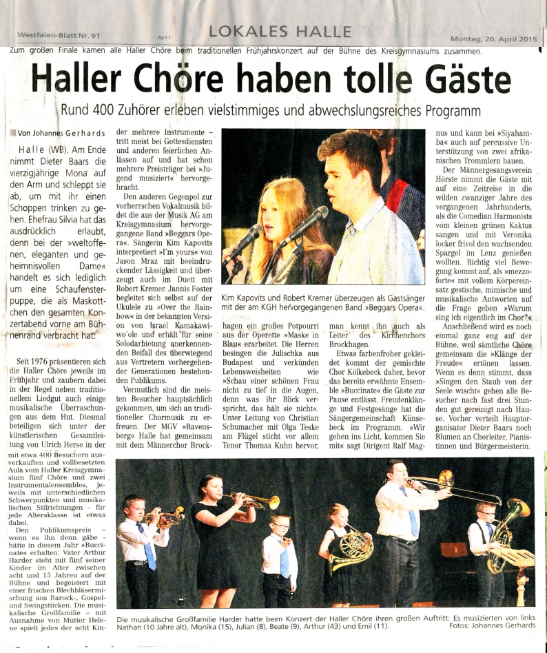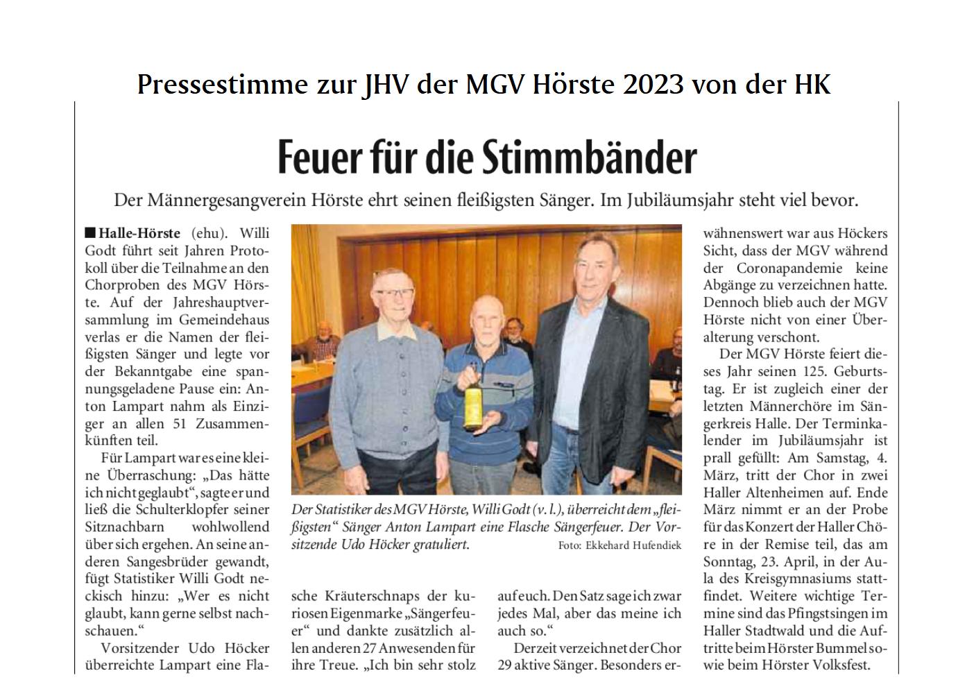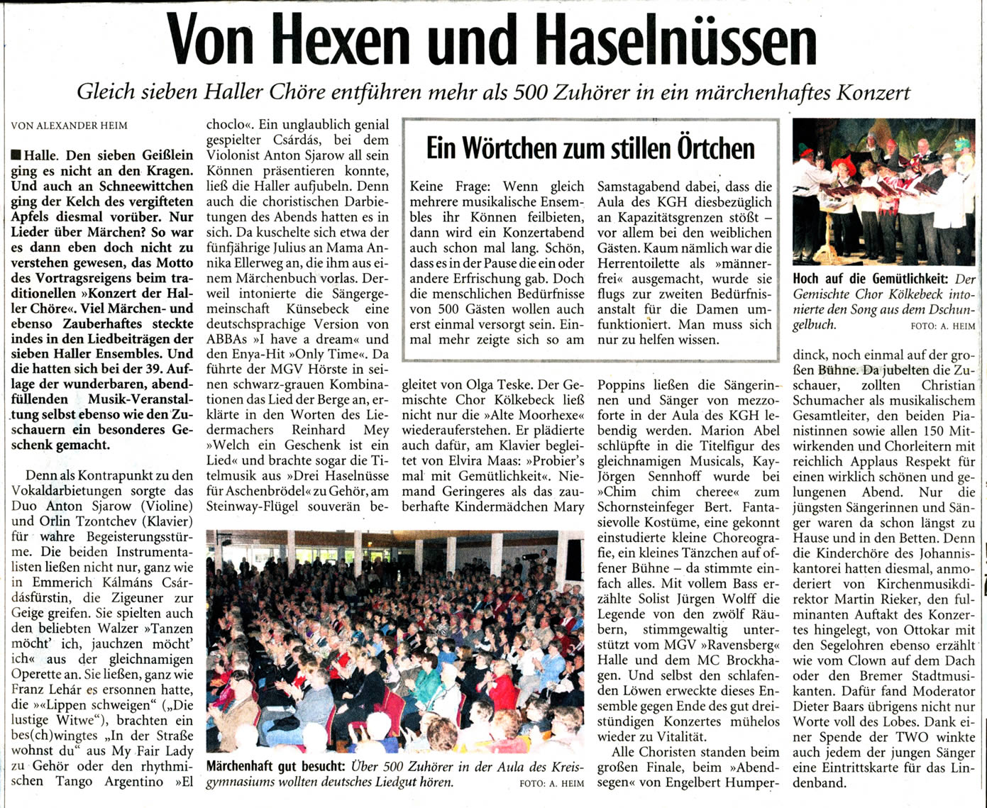 Haller Kreisblatt zum Frühlingsfest des MGV-Hörste