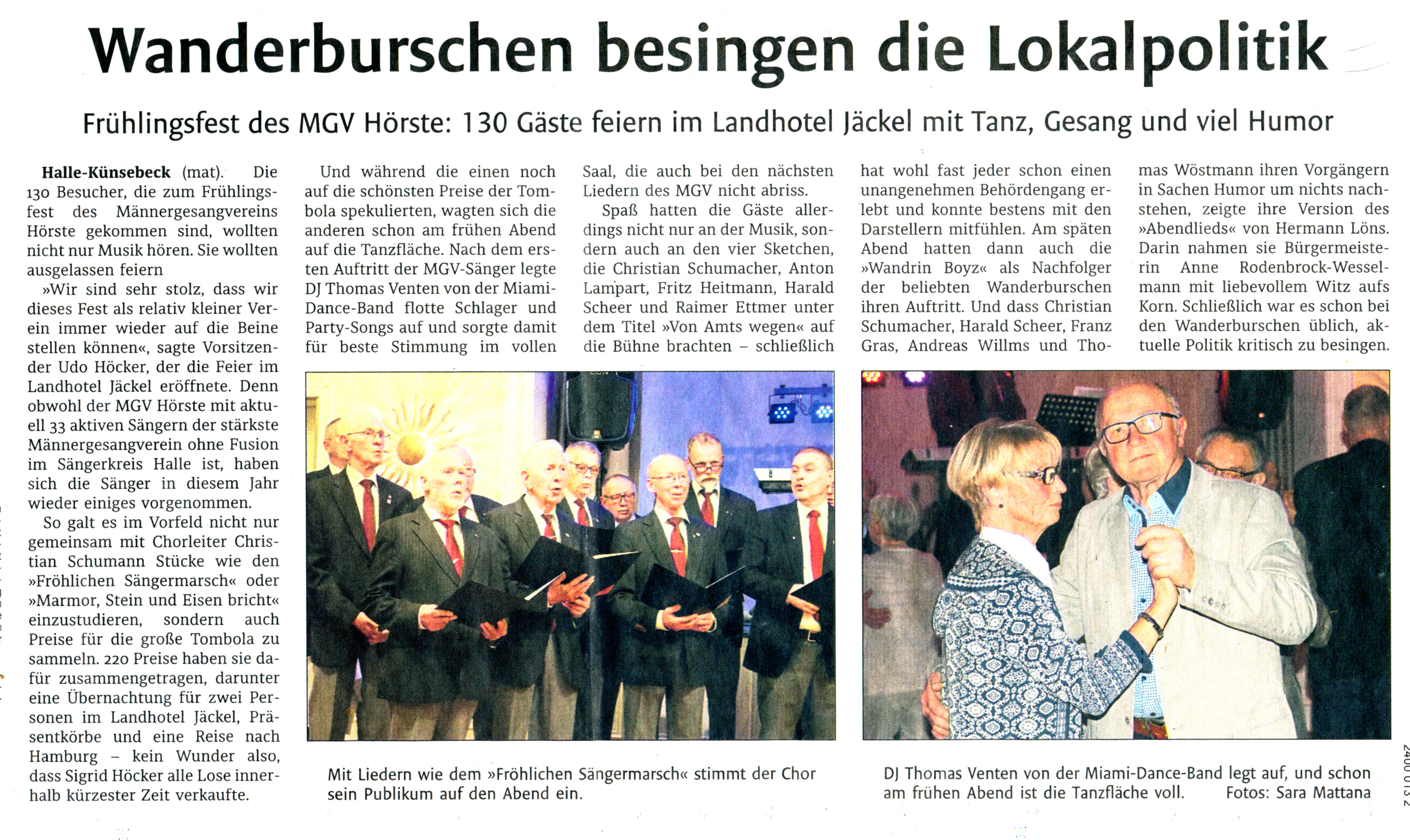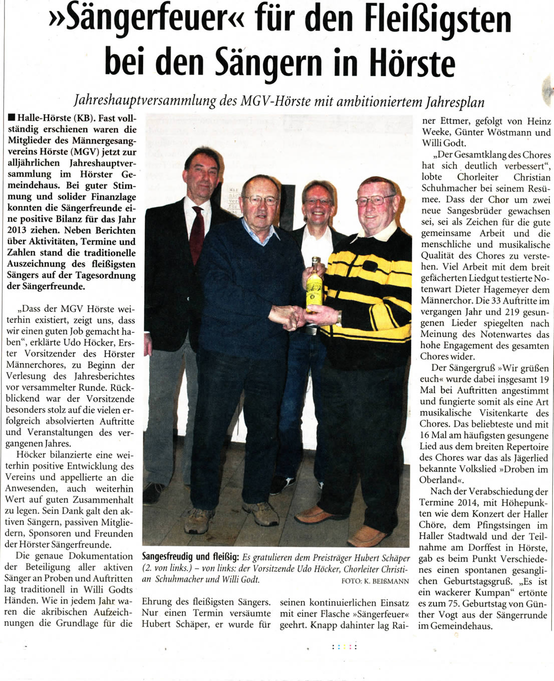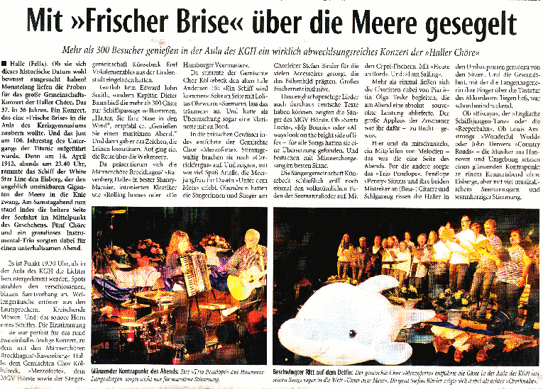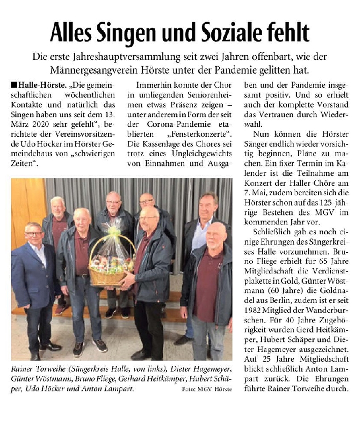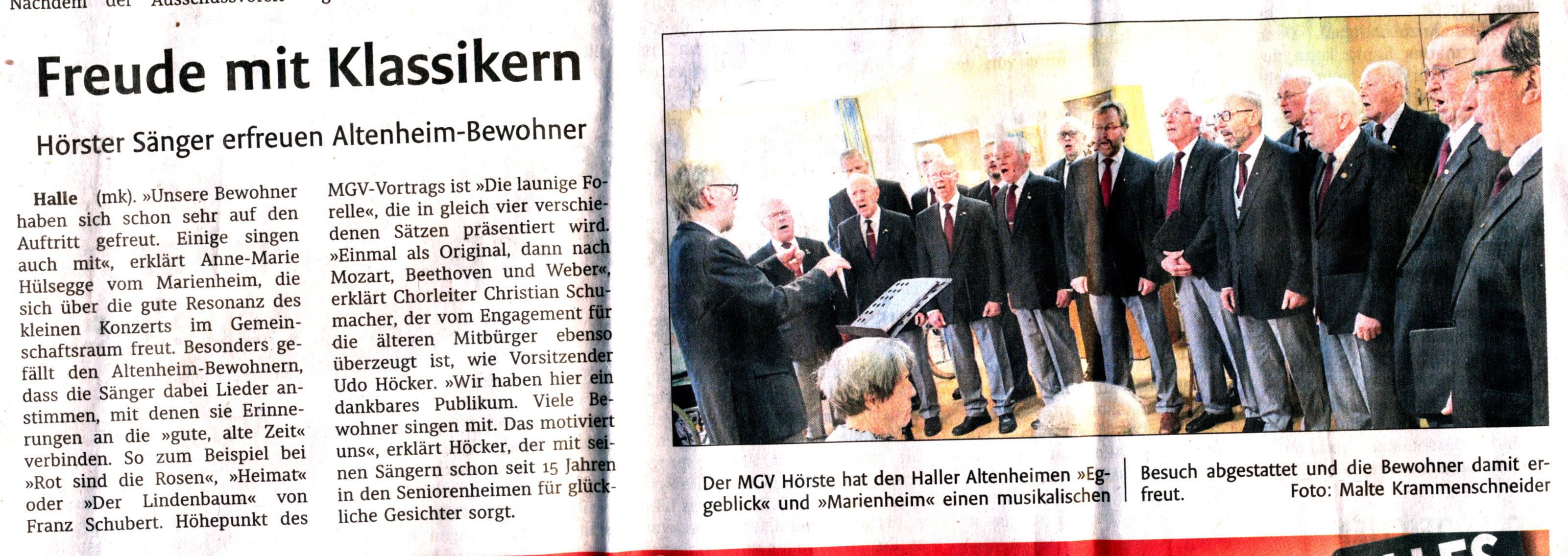 Haller Kreisblatt zum Frühlingsfest des MGV-Hörste