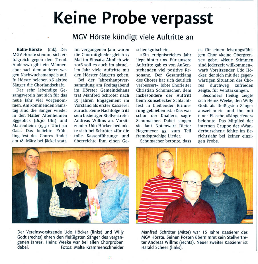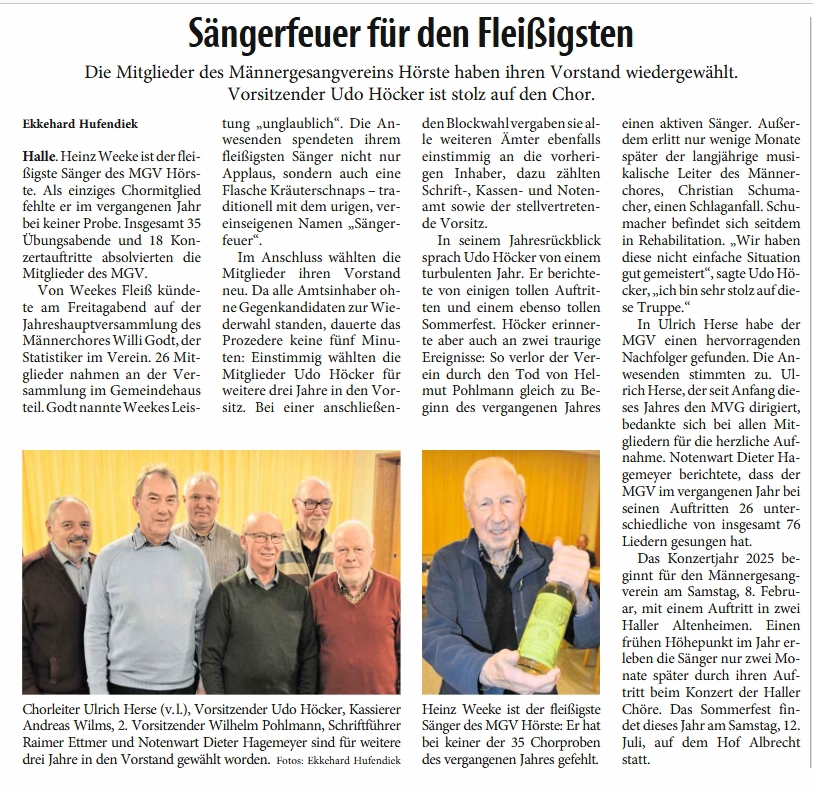 hat das Haller Kreisblatt unsere Jahreshauptversammlung wahrgenommen.
