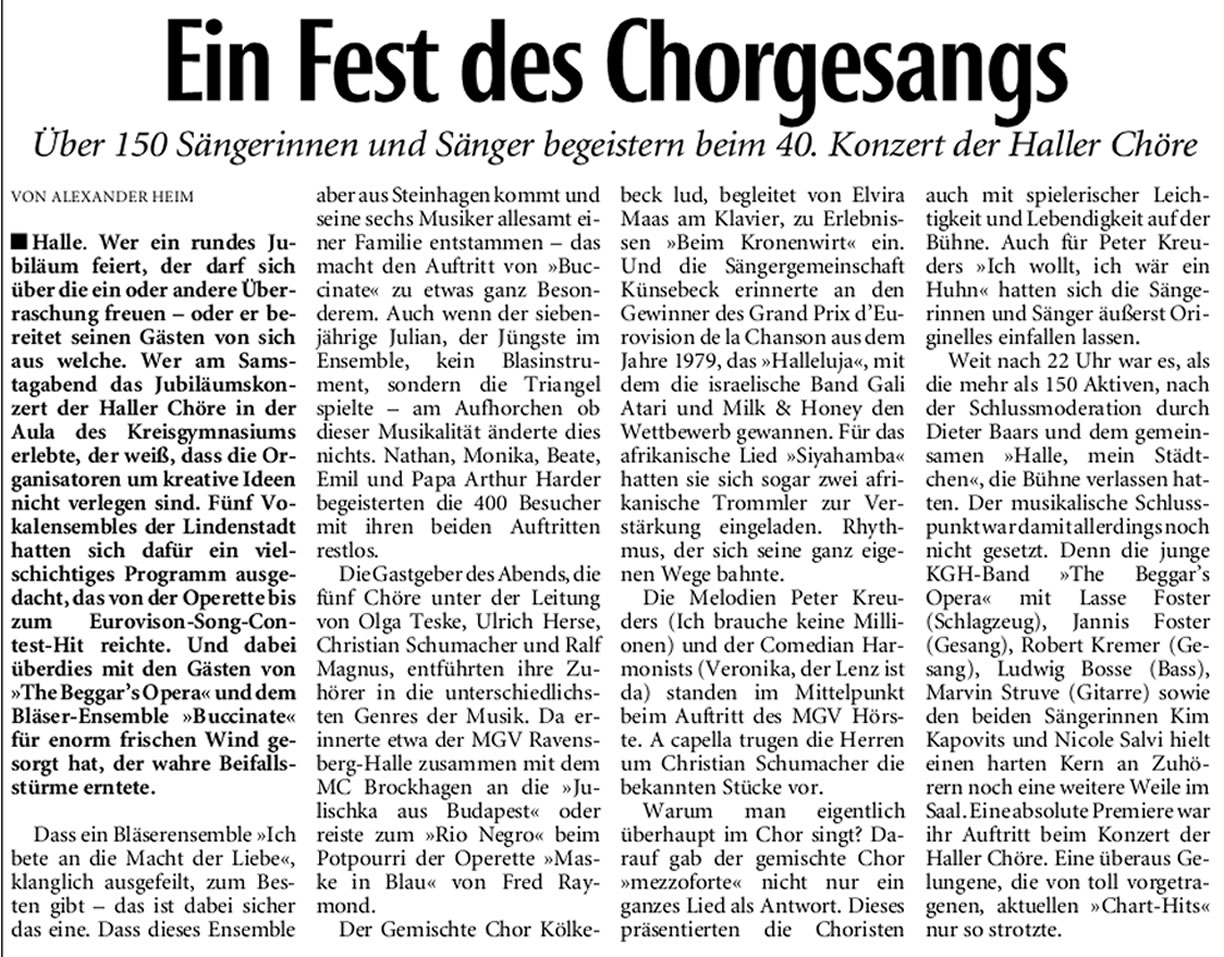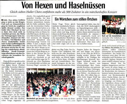 | So wurde der Abend vom Haller Kreisblatt wahrgenommen. | ||