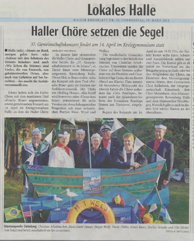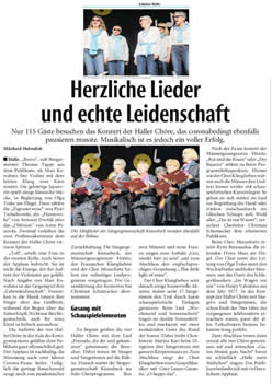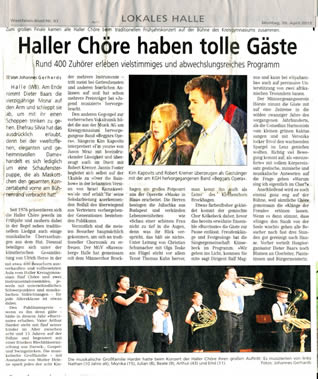 Haller Kreisblatt zum Konzert-Haller-Chöre 2018