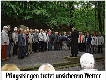 zweiten Pfingstag 25.05.2015 Morgens in aller Frühe (9:00 Uhr) mit den Männerchören Halle / Ravensberg, Brockhagen und dem Posauenchor den Frühling mit einem Reigen bunter Melodien - die fast jeder kennt - begrüßen. |